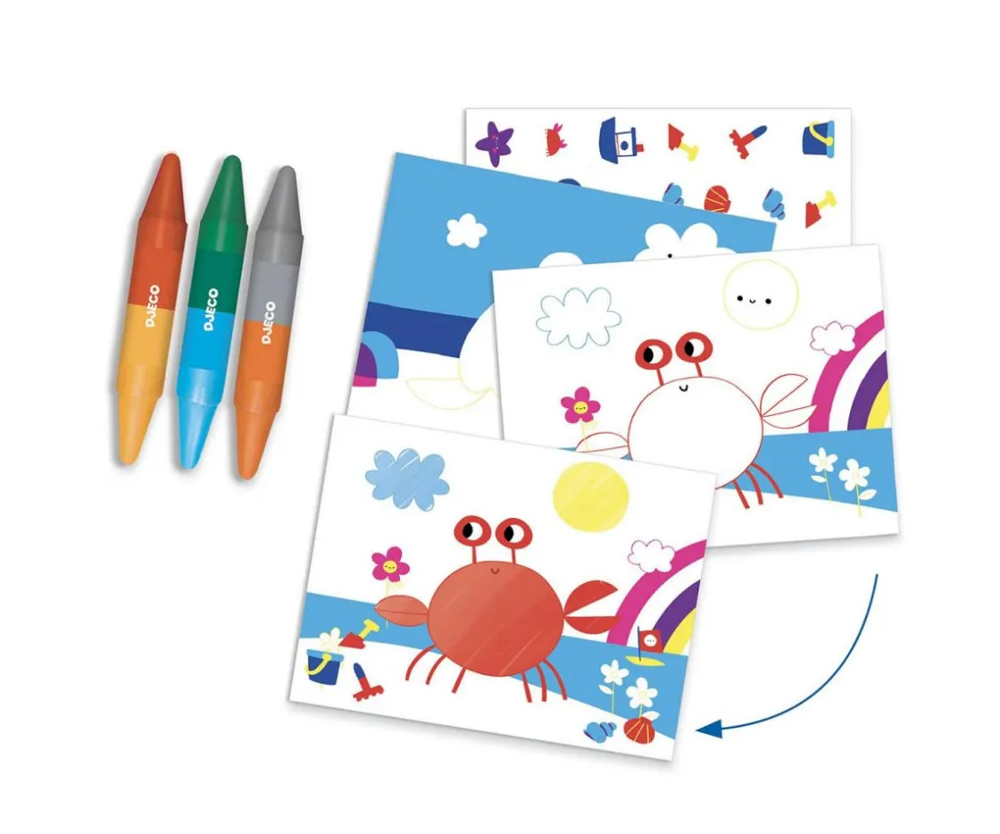 Un set muy completo que ofrece 6 actividades creativas y muchos proyectos de temática marina: collage, colorear, mosaicos, corte, montaje, calcar … ¡Hay para todos los gustos! Horas de actividades manuales para descubrir diferentes técnicas creativas.