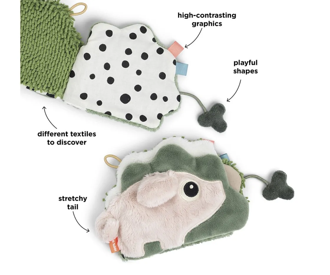 Con este suave libro de la colección Tiny Farm de Done by Deer, tú bebé se sumergirá en el maravilloso mundo de las actividades sensoriales. A través de sus páginas descubrirá diferentes texturas, formas, etiquetas de colores y dulces sonidos.