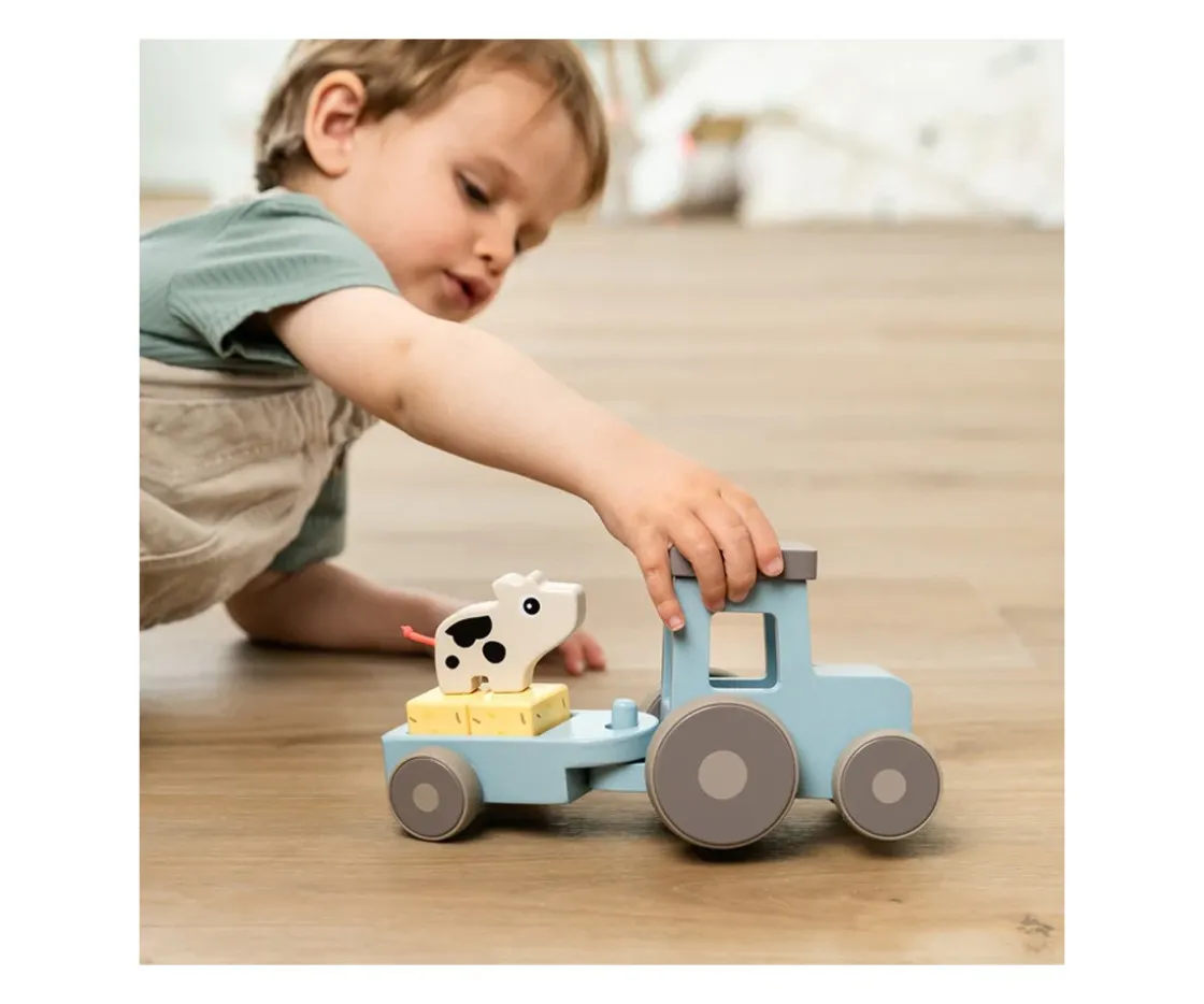 Este simpático tractor de madera con remolque y ruedas suaves de Done by Deer invita a los más peques desde los 18 meses a imaginar mil historias de granja mientras desarrollan habilidades motoras y dan sus primeros pasos en el juego simbólico.