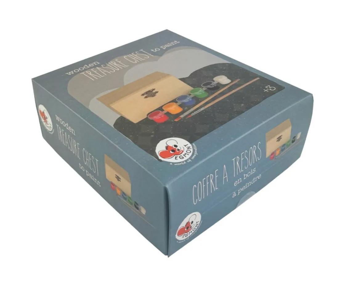 ¡Explora tu creatividad con este cofre del tesoro de madera! Viene con 2 pinceles y pinturas para que diseñes tu propio cofre según tu imaginación y poder guardar tus tesoros más queridos.