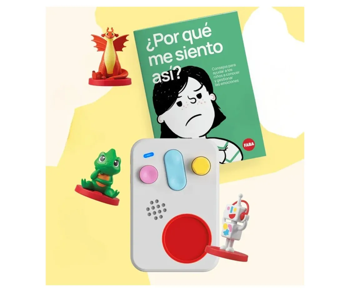 Descubre Un Mundo de Emociones de FABA, un completo kit educativo para niños de 3 a 5 años diseñado para ayudarles a reconocer, comprender y expresar emociones como la alegría, la tristeza, la rabia o el miedo. Este set combina Personajes Sonoros FABA, cuentos y música con una guía impresa escrita por la psicoterapeuta Marta Rizzi, ofreciendo herramientas prácticas para aprender juntos en familia.