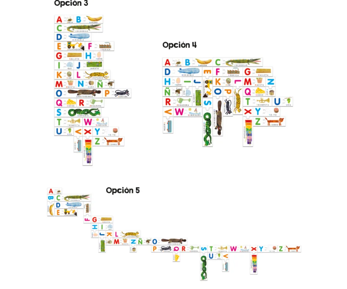 A través de la manipulación, los pequeños desarrollan la conciencia fonémica, mejoran la motricidad fina y aprenden a distinguir palabras cortas y largas mientras montan el abecedario.