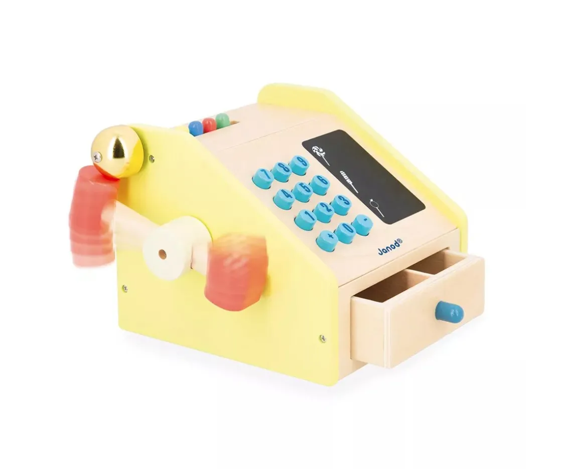 ¡Bienvenidos a la tienda más dulce! Este colorido puesto de golosinas de Janod, está hecho de madera y es ideal para el juego de imitación. Con él, los pequeños comerciantes pueden inventar historias, interactuar con los amigos y jugar a vender dulces a toda la familia. La máquina registradora tiene elementos de lo más realistas.