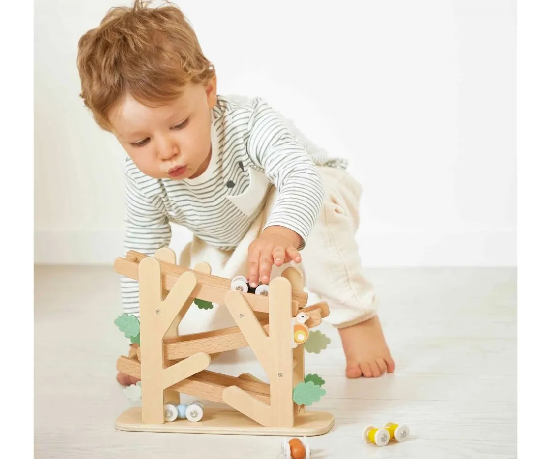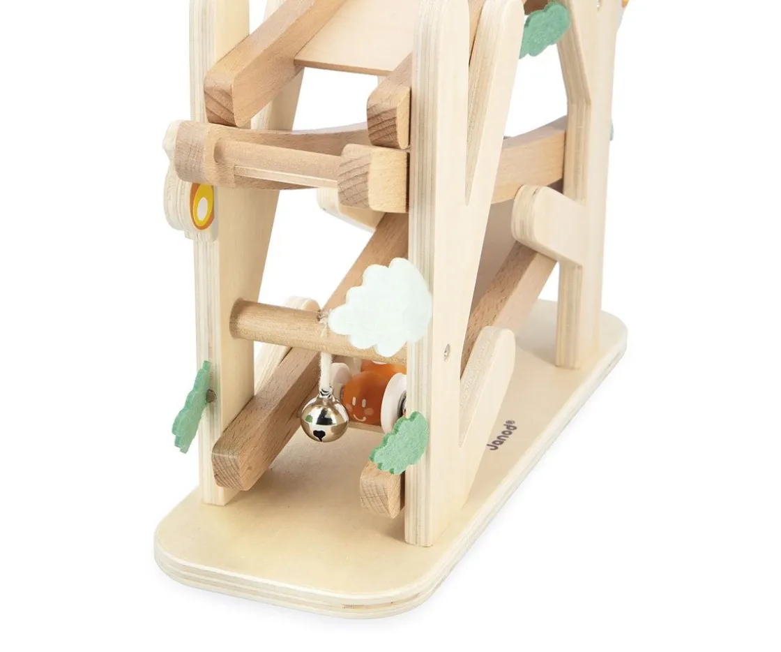 El original circuito de madera de Janod por el que podrás lanzar a los vehículos de colores con forma de hormiguita. A los peques les encantará colocar a las hormigas una a una en la cima del circuito y verlas dencender a toda prisa.
