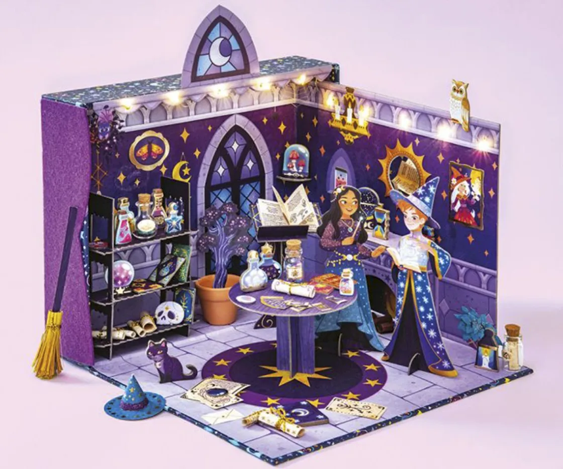 Este kit creativo te permite crear una auténtica escuela de magos en miniatura directamente en la caja. Monta, pega y decora este pequeño universo con una guirnalda luminosa.