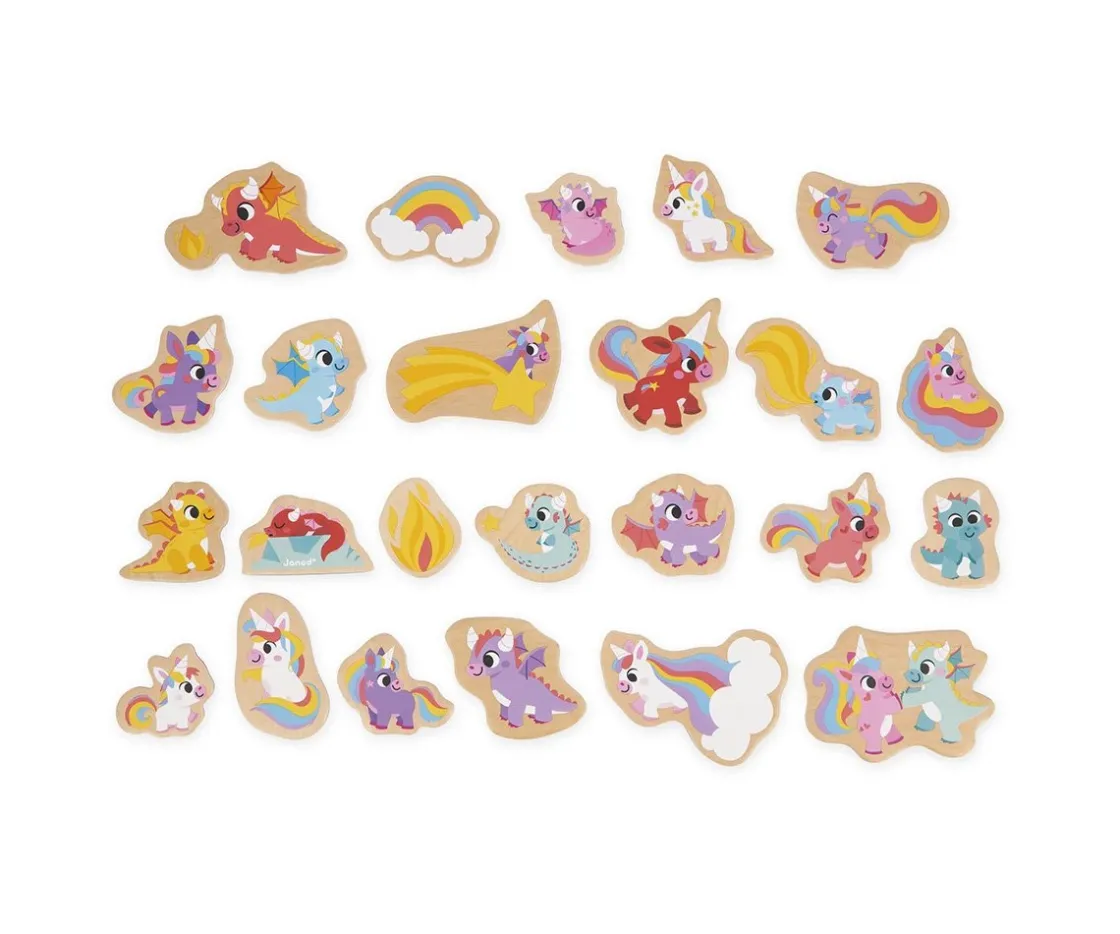 Los 24 imanes decorados con alegres unicornios y dragones son ideales para que los coloques en tu pizarra magnética, nevera o cualquier otra superficie magnética.