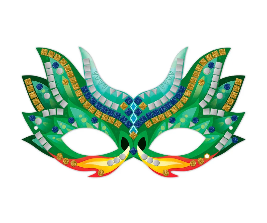 Los peques podrán crear 6 máscaras de espuma mate o brillante. Gracias a las marcas de la máscara de cartón, los peques eligen el color del mosaico correspondiente y lo ponen en su sitio para ir conformando su obra.