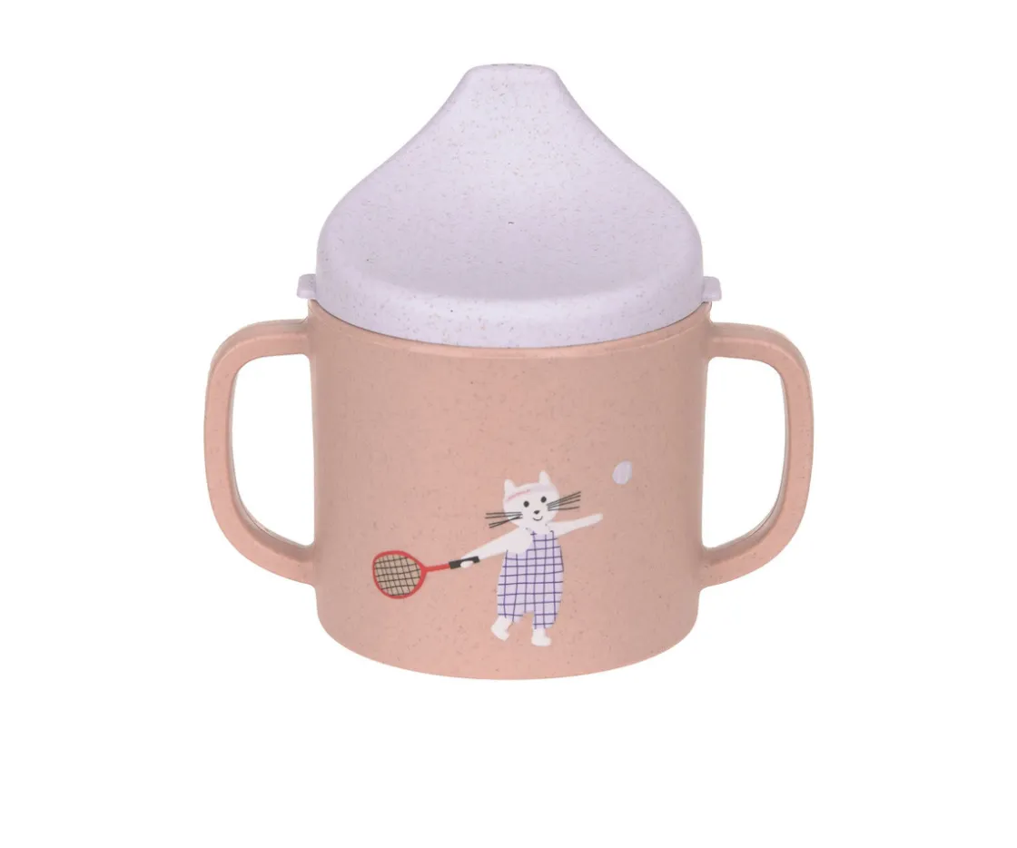 Taza de aprendizaje para bebés de Lässig a partir de 6 meses. Su diseño con dos asas lo hace cómodo para las manos de los más pequeños y con la tapa evita posibles derrames.