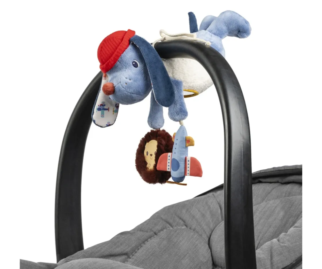 El perrito Jules de Lilliputiens es un adorable juguete de actividades pensado para estimular los sentidos de los más pequeños. Se puede colgar en el cochecito o la silla de paseo, e incluye un espejo sensorial, un sonajero erizo y una avioneta que lo convertirán en el pasatiempo favorito de tu bebé.