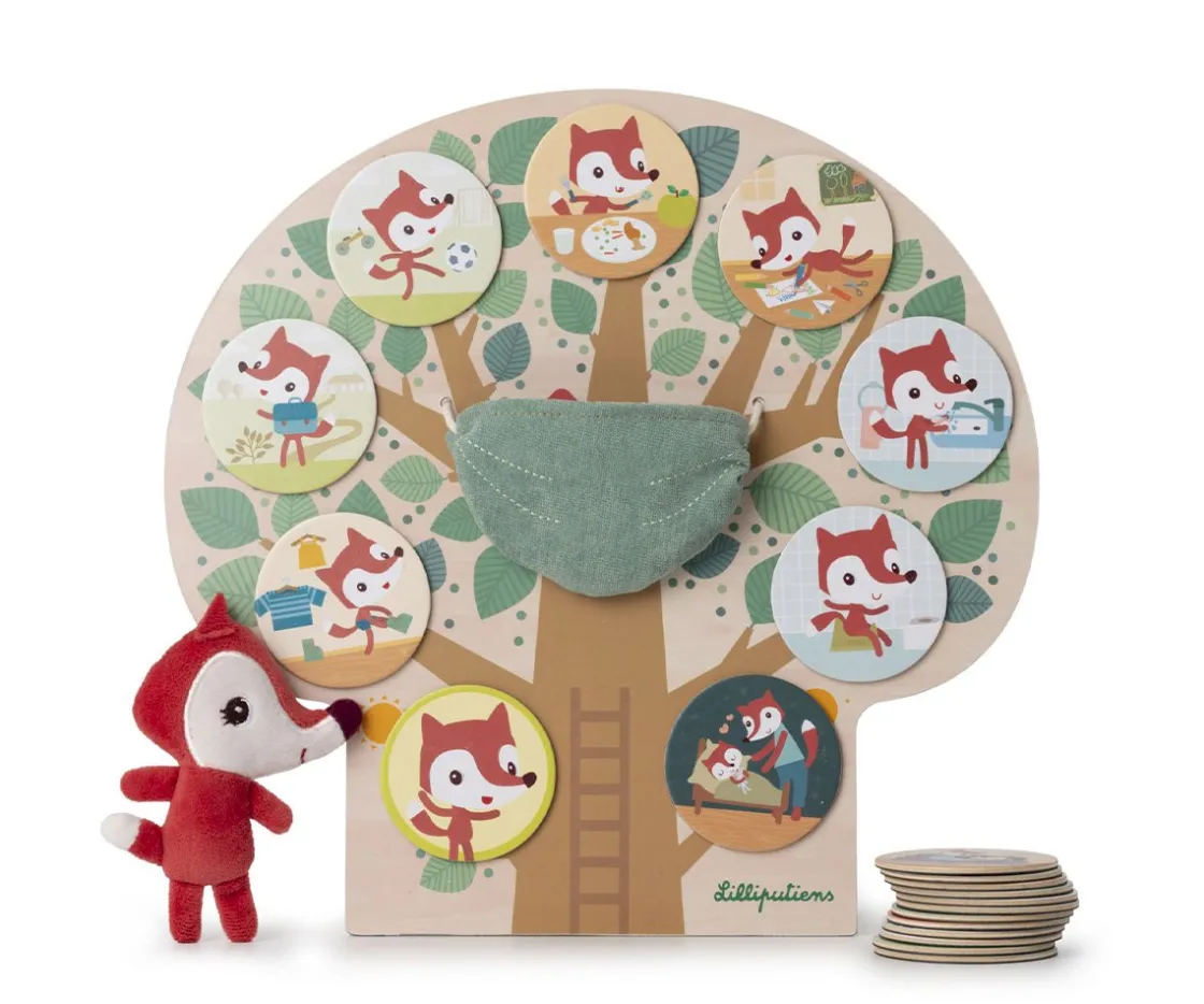 Este tablero magnético de madera en forma de árbol hace que comenzar el día sea muy divertido. Incluye tarjetas magnéticas con escenas cotidianas, permitiendo a los niños organizarse o contar que ha hecho durante el día. Con la ayuda de Alice, la pequeña zorrita de Lilliputiens, acompañará al peque en su narración.