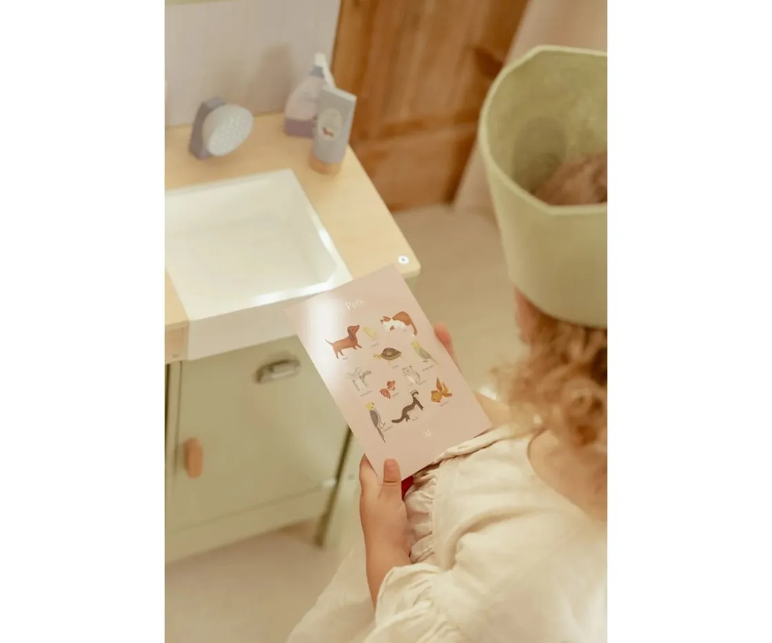 Un lugar en el que podrás dar todos los cuidados que necesiten a tus peluches como si fueras un auténtico veterinario. En esta clínica encontrarás una ducha retráctil con lavabo, un peine, un termómetro, una jeringa, vendas, una diadema de tela y un clip especial para mostrar ilustraciones médicas y radiografías.