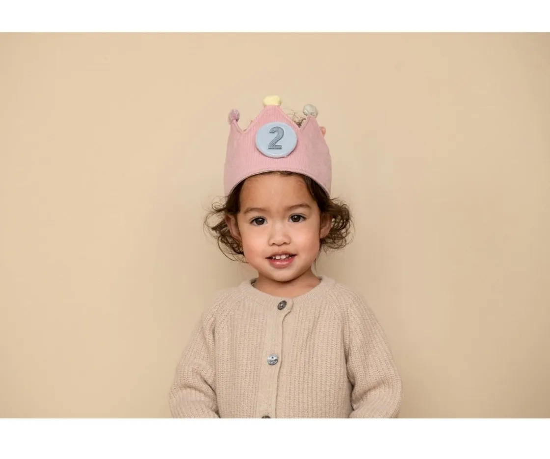 Esta preciosa corona con cierre de velcro será el complemento ideal para las celebraciones de cumpleaños de los peques. Confeccionada en tejido suave acolchado y acanalado de color rosa con pompones en sus puntas, cuenta con números intercambiables del 1 al 5, lo que la hace ideal para acompañar a tu peque durante su crecimiento.