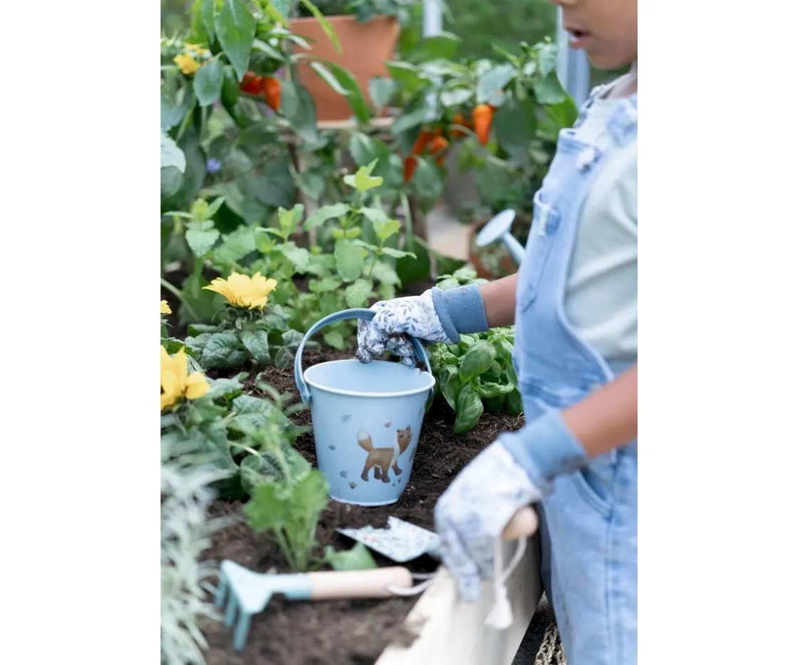 Fabricado en metal resistente y con un asa práctica, este cubo es perfecto para los pequeños jardineros.