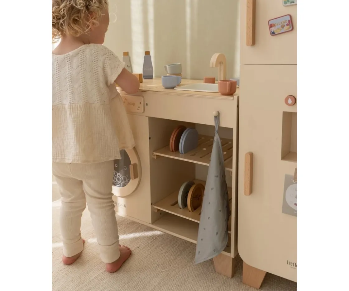 Con esta preciosa lavadora y lavavajillas de madera FSC de Little Dutch, los pequeños podrán imitar a los adultos mientras desarrollan habilidades clave a través del juego simbólico.