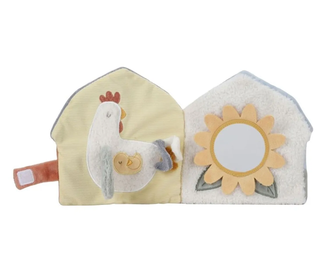 Los libros blanditos son genialed para fomentar la coordinación ojo-mano.El libro Little Farm Incluye en sus páginas un espejo, un sonajero crujiente y etiquetas para tocar. Cierra sus blanditas páginas con una tira de velcro.