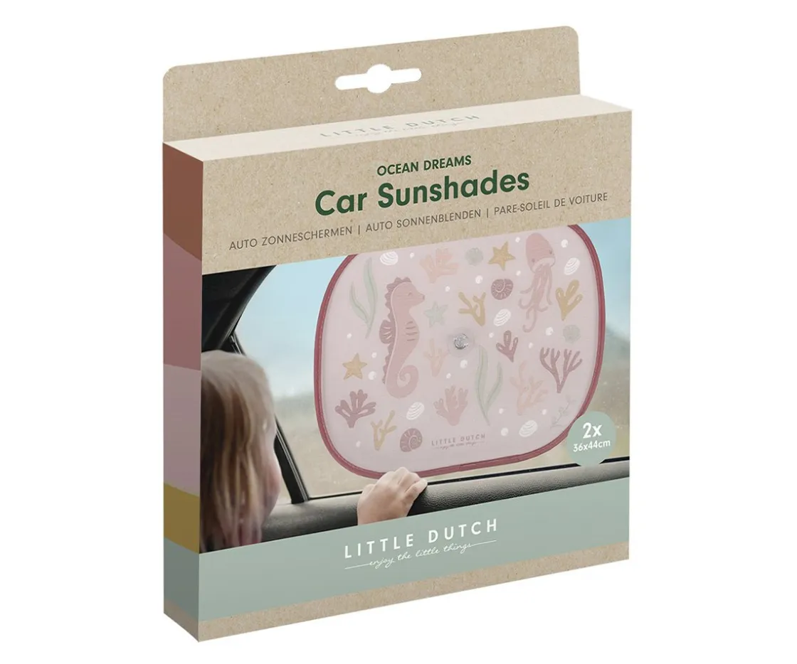 Con su veraniego estampado de la colección Ocean Dreams Pink, estos parasoles no solo proporcionan sombra, sino que también añaden un toque divertido a la ventana del coche.