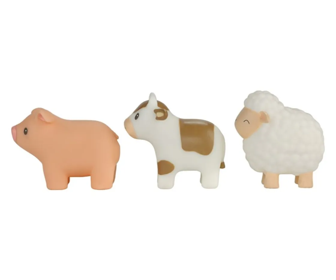 Un cerdito, una vaca y una ovejita de tamaño perfecto para que los peques los manipulen con facilidad tanto durante el baño como fuera de él. Les encantará imaginar divertidas historias sobre granjas y sus animalitos.