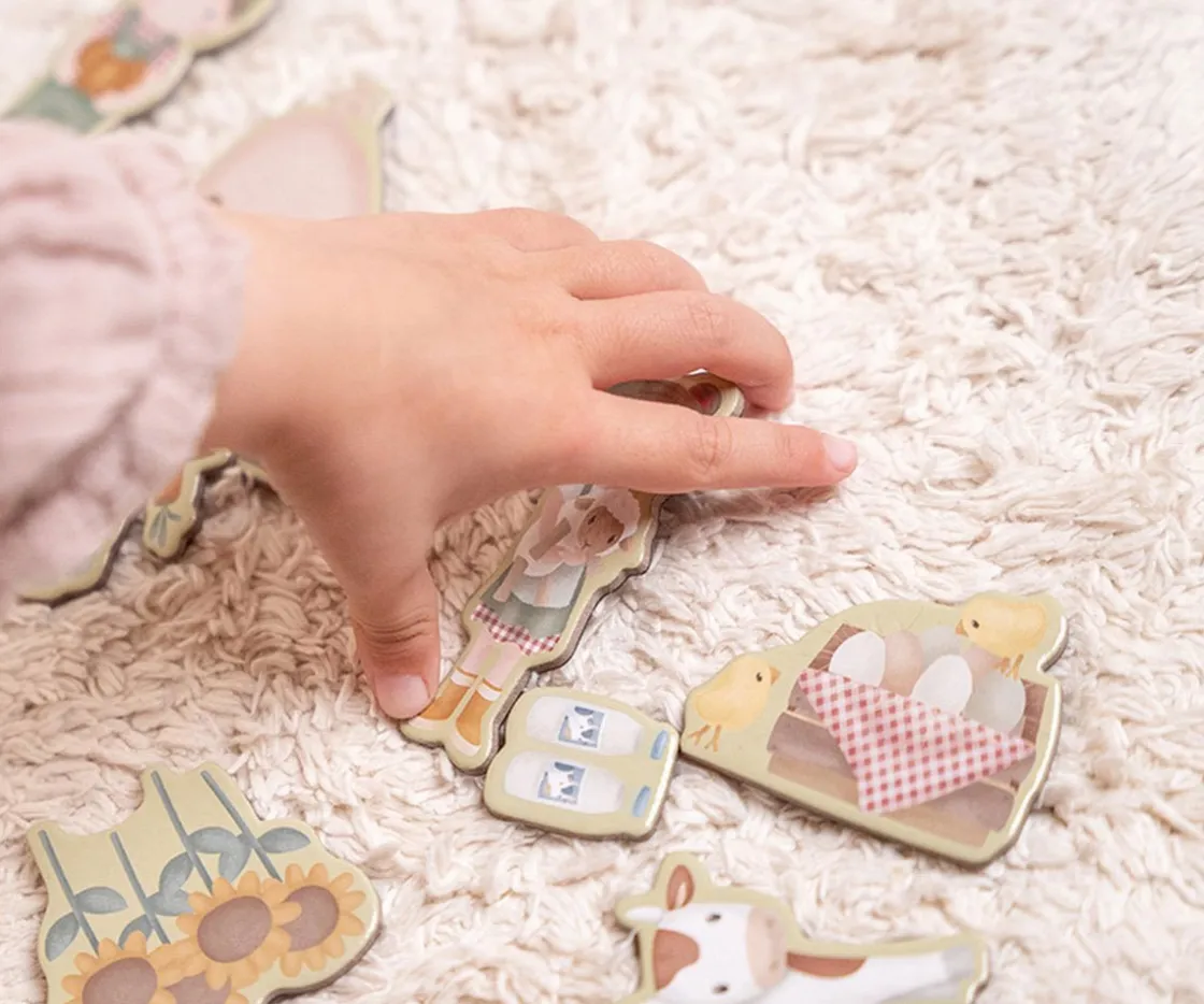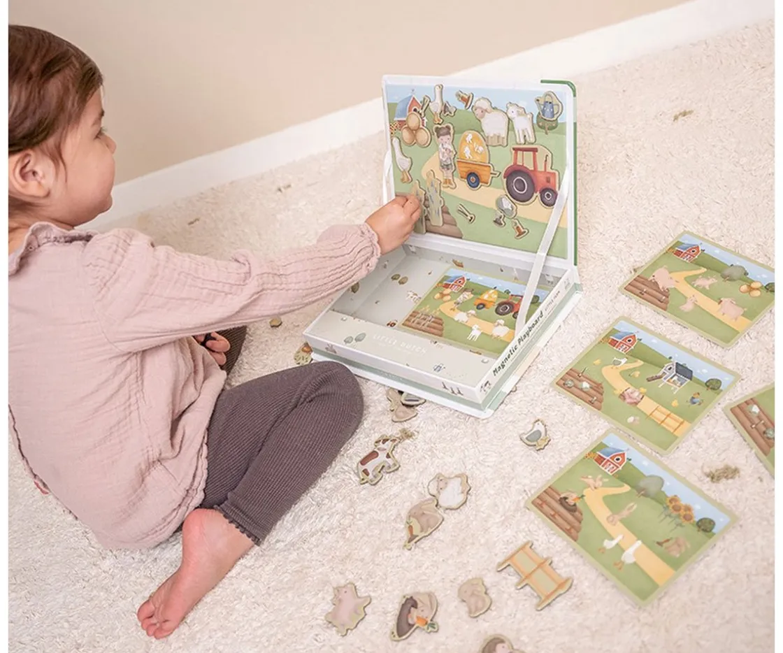 ¡Todos a la granja! Con este puzzle magnético puedes copiar las imágenes de las tarjetas que se incluyen o colocar los imanes dejando volar tu imaginación y creatividad.