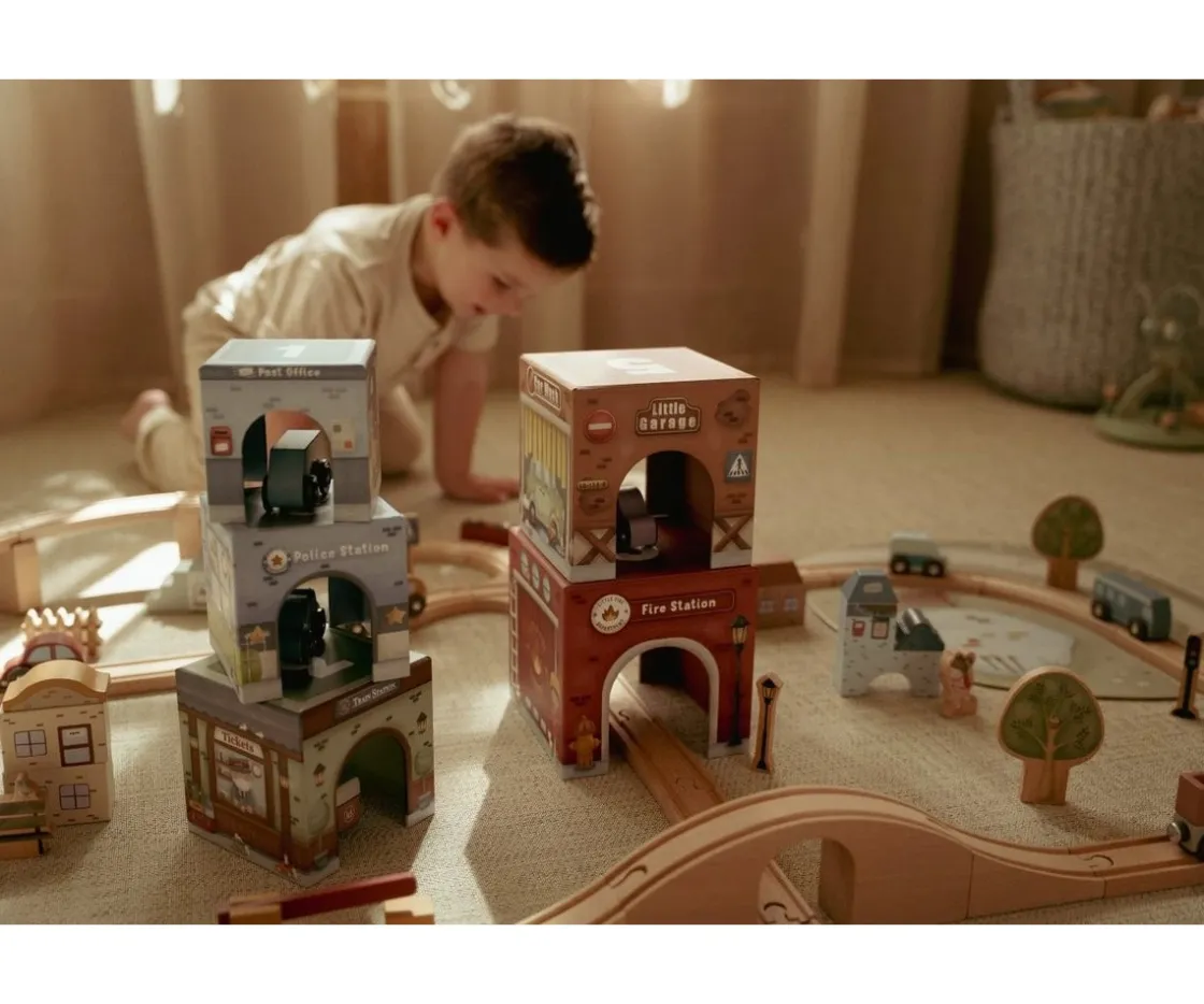 La Torre Encajable Ciudad con Coches de Little Dutch es un set completo y versátil que invita al juego libre, la creatividad y la motricidad fina desde los 18 meses.