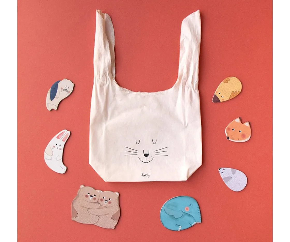 Cada puzzle tiene 3 piezas grandes con distintos animales abrazando a sus crias.