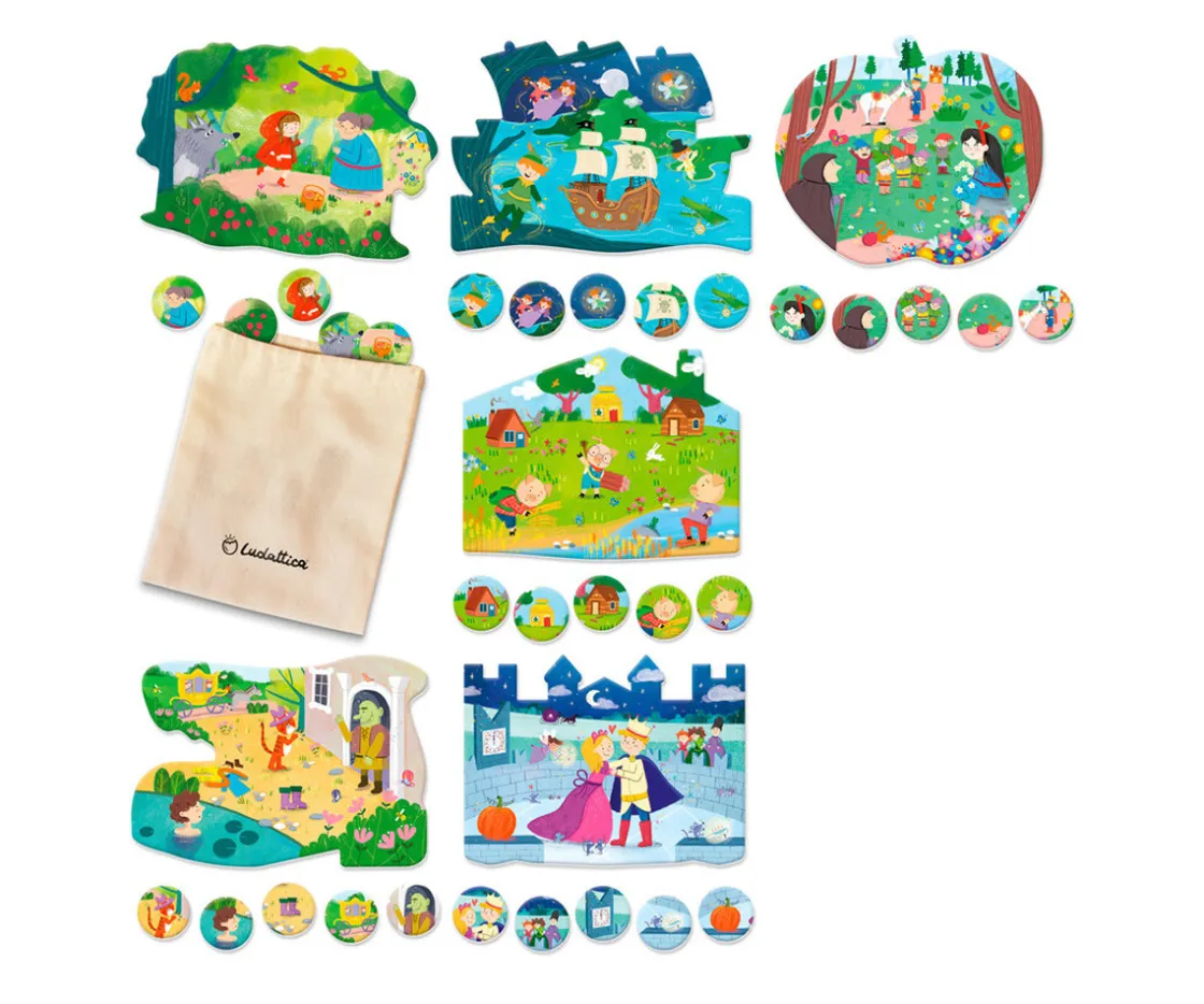 El Bingo de los Cuentos de Ludattica es un juego familiar lleno de magia que combina dos clásicos en uno: bingo y memo / busca y encuentra. Perfecto para introducir a los niños en el mundo de los cuentos de hadas, este set invita a reconocer personajes, objetos y escenas que forman parte de historias tradicionales que todos conocemos.