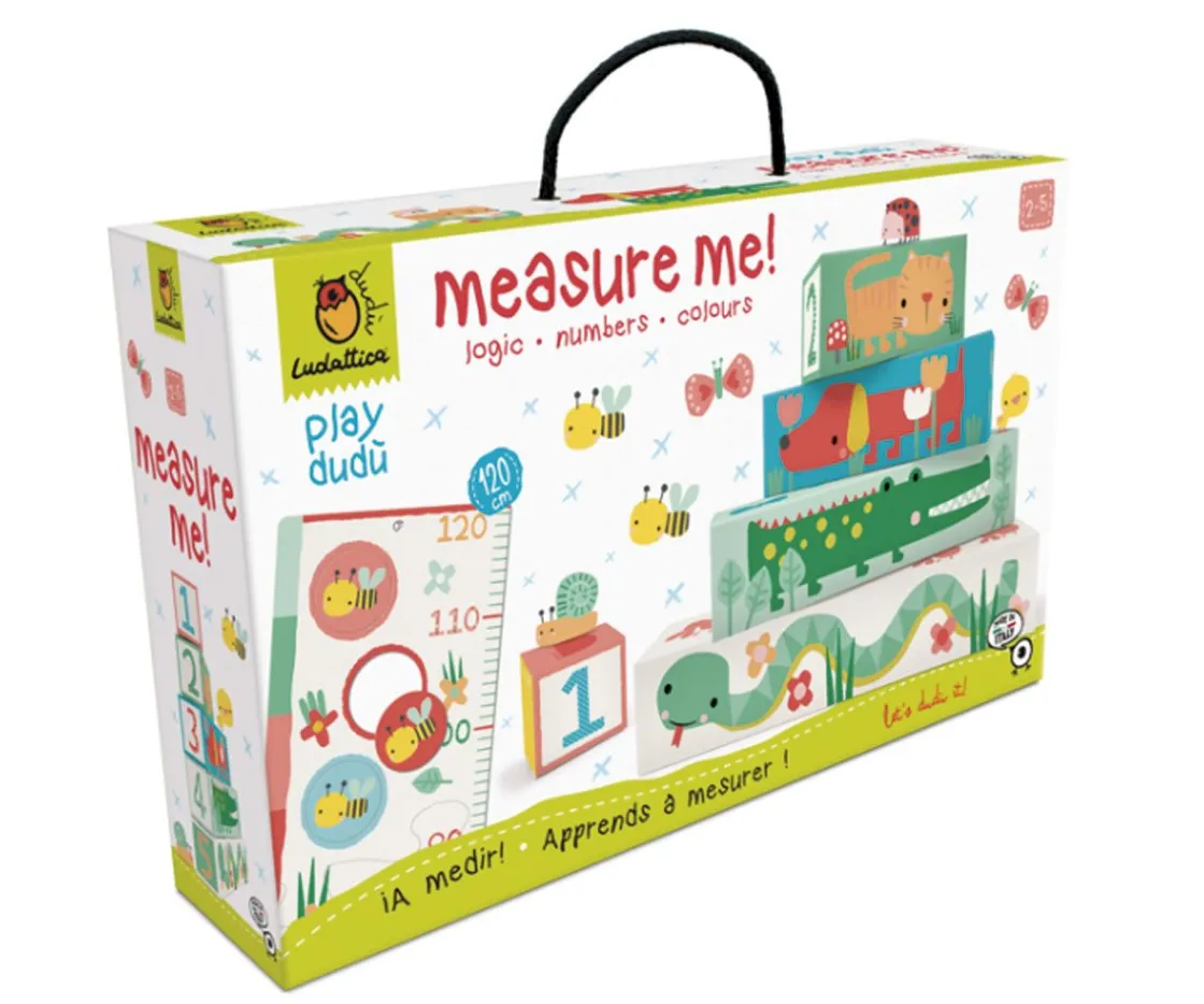 Estos 5 bloques rectangulares de distintos tamaños con ilustraciones de animales permitirán a los peques identificar números y colores. Incluye un puzzle medidor de 1.2 metros para jugar y colgar en la pared.