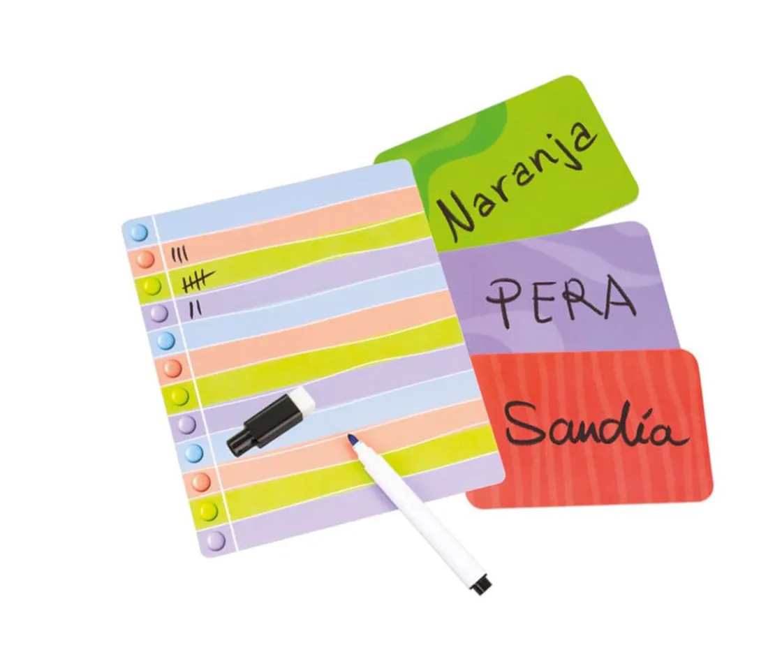 - Baraja las cartas y coloca mitad en cada tarjetero. Cada jugador toma un rotulador y una tarjeta de respuesta.