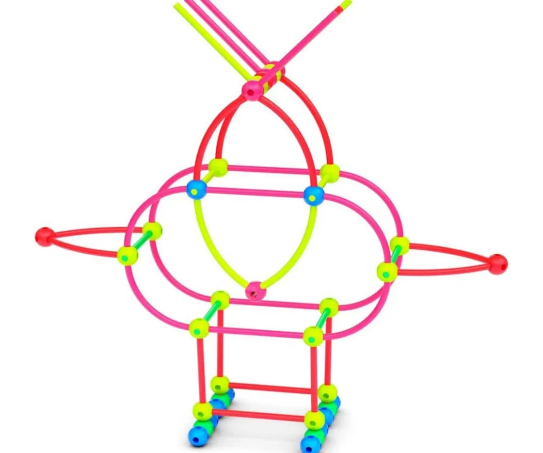 Stik son varillas flexibles que se unen entre si usando bolitas con agujeros para crear estructuras 3D.