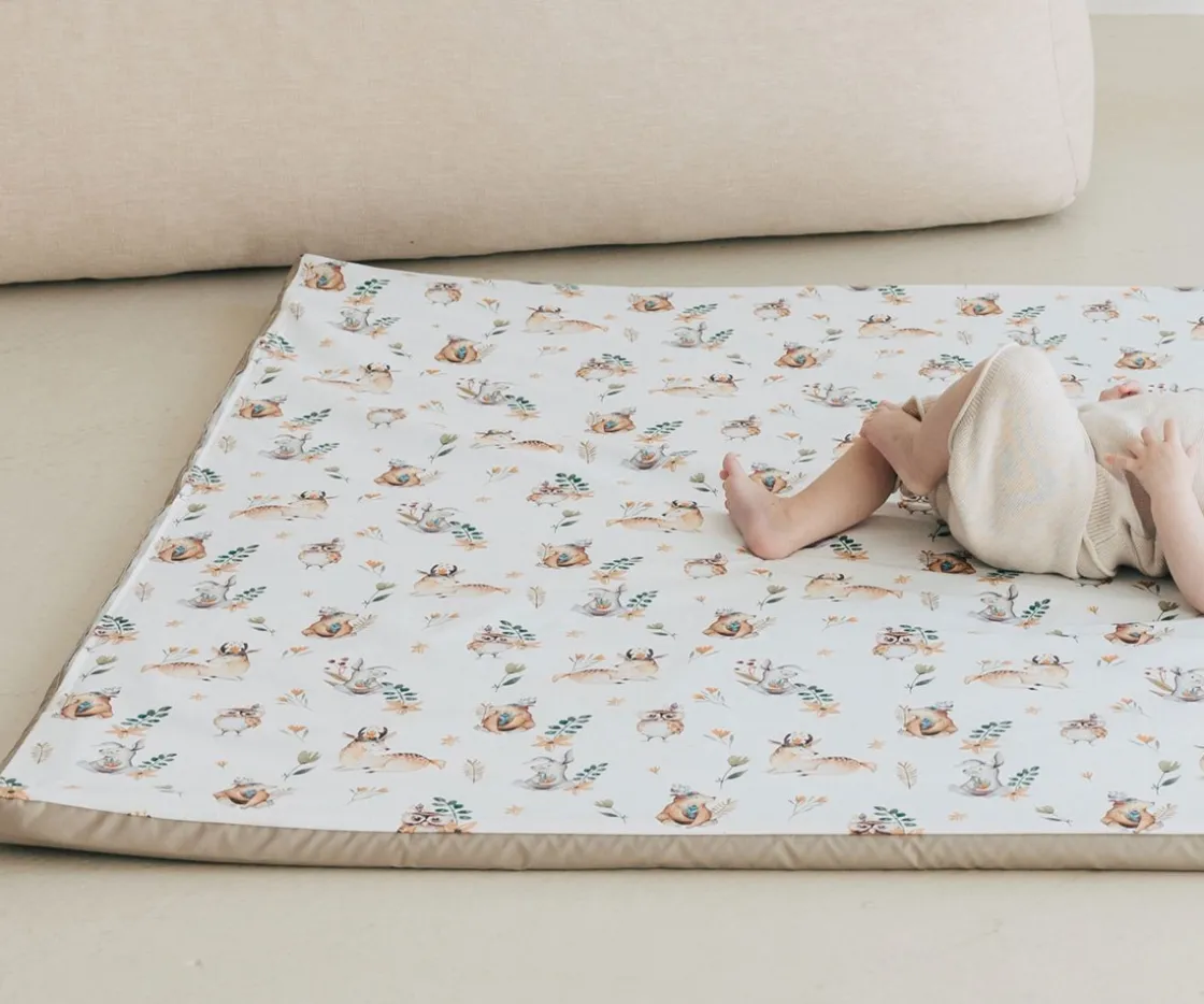 Descubre Enrollagateo de Mimaar una colchoneta de gateo de una sola pieza, transportable y evolutiva.