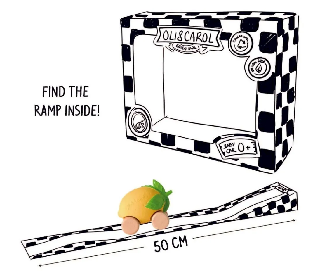 Los Green Cars de Oli&Carol son una colección de coches de juguete para bebé con formas de frutas y verduras.