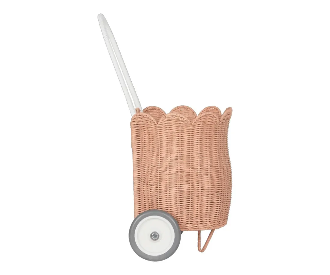 El complemento perfecto para acompañar a tu peque en sus pequeñas aventuras.Con su encantador diseño en forma de pétalos y su color suave y delicado, este carrito de mimbre aporta un toque mágico a cada paseo, ya sea en el jardín, la playa o de camino al mercado.