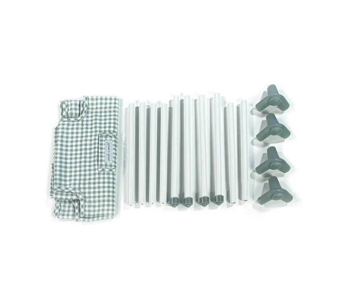 Ya puedes llevarte de vacaciones a tus muñecas con la cuna de viaje Tom Vichy verde de Pasito a pasito, plegable y muy práctica