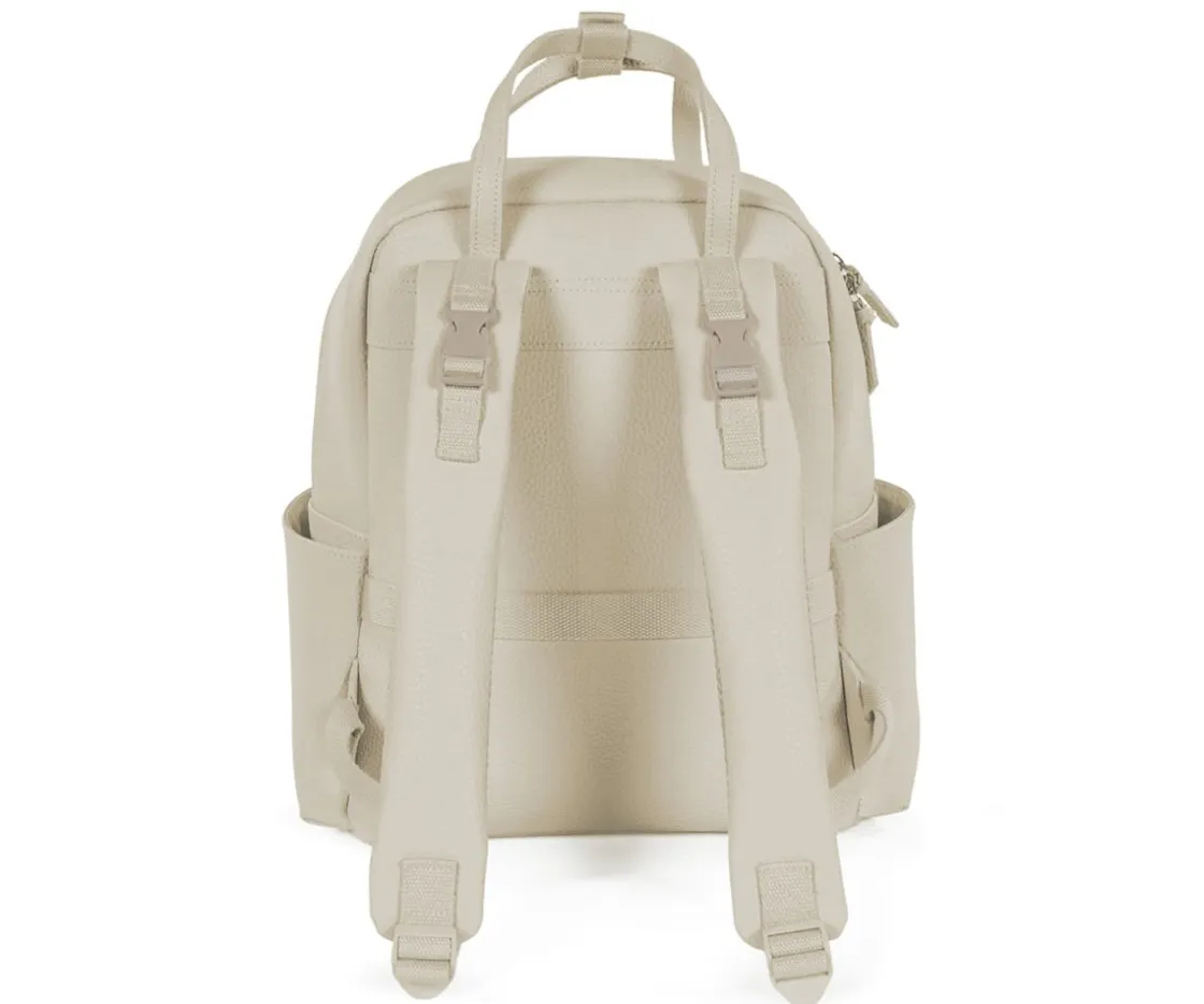 Mochila Icon Cream de Pasito a Pasito, es ideal para llevar todo lo necesario durante el paseo del bebé. Su resistente y delicada polipiel lo hace ligero y duradero, con amplio compartimento principal espacioso, bolsillo interior térmico para biberones, bolsillo plastificado y bolsillo para cambiador.