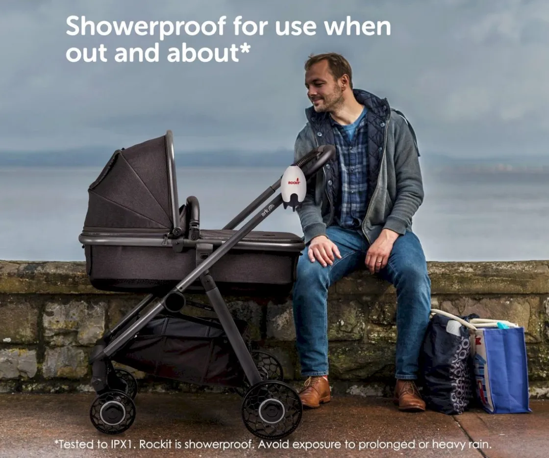 Este original cohete mecedor de Rockit es un accesorio ideal y muy original para colocar en el carro de tu bebé y mantenerlo en movimiento para relajarlo, calmarlo y dormirlo.