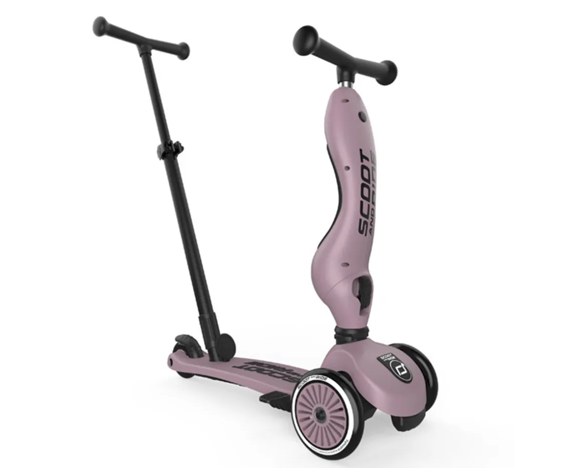 El patinete Highwaykick 1 Push and Go de la marca Scoot and Ride, combina todas las ventajas del Highwaykick One con una nueva característica: la barra de empuje para padres y madres.