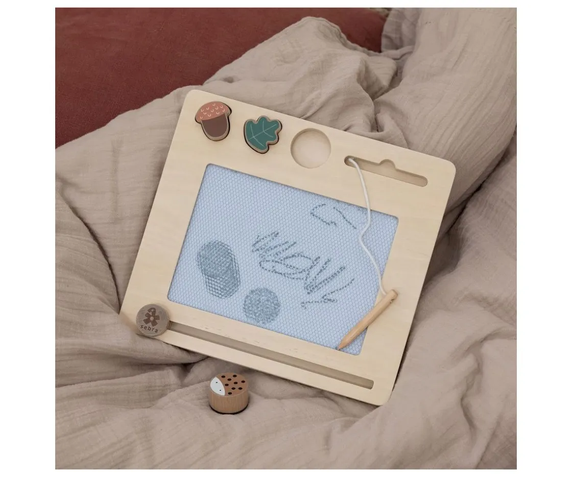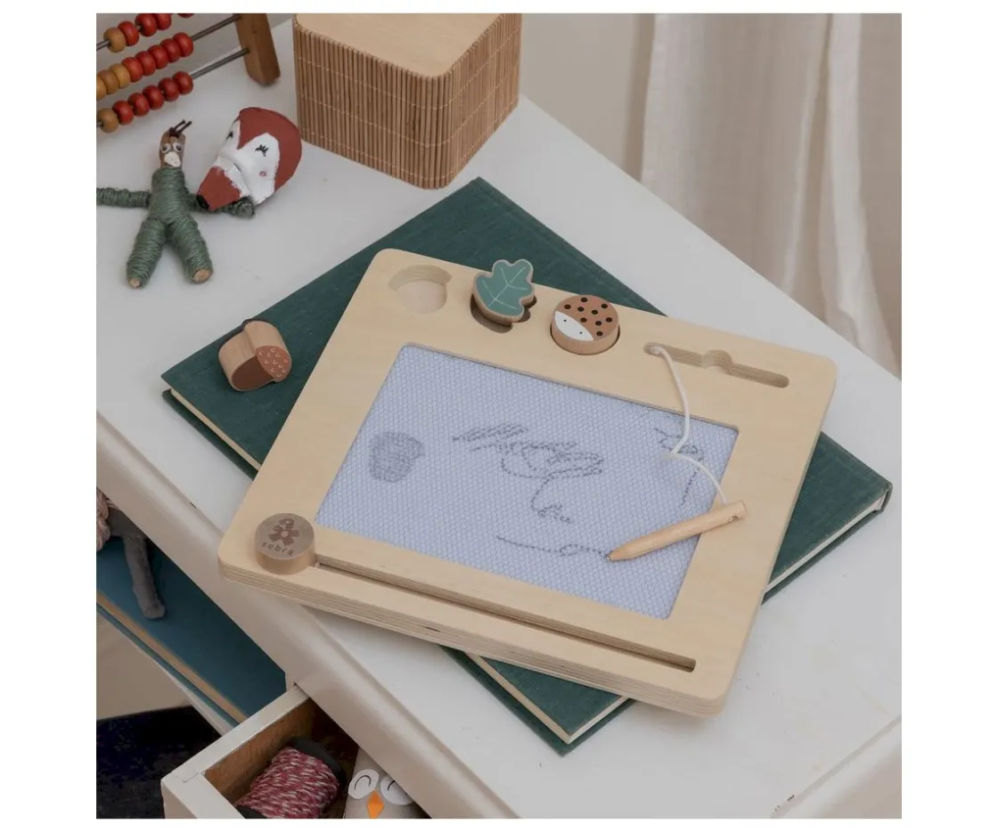 Los peques podrán dar rienda suelta a su imaginación y realizarán sus propias creaciones en este original tablero magnético con exterior de madera y bolígrafo magnético.