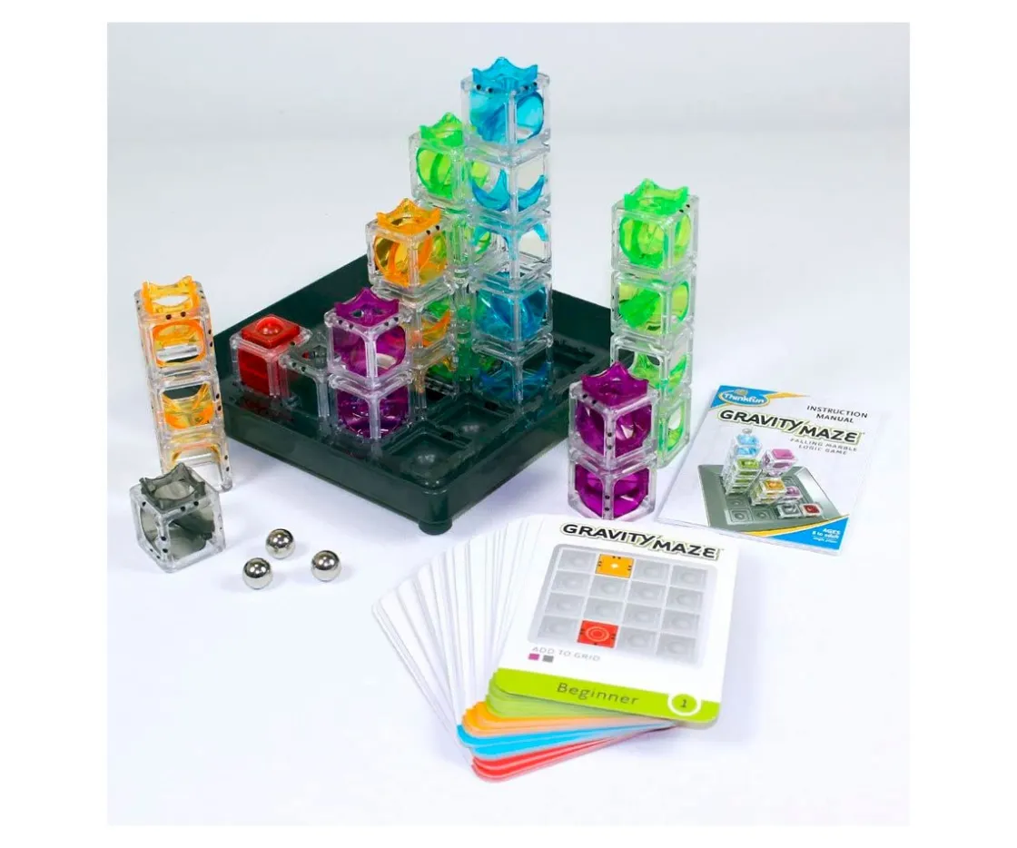 - Incluye 60 desafíos, 1 cuadrícula,10 torres de laberinto,3 canicas de acero inoxidable