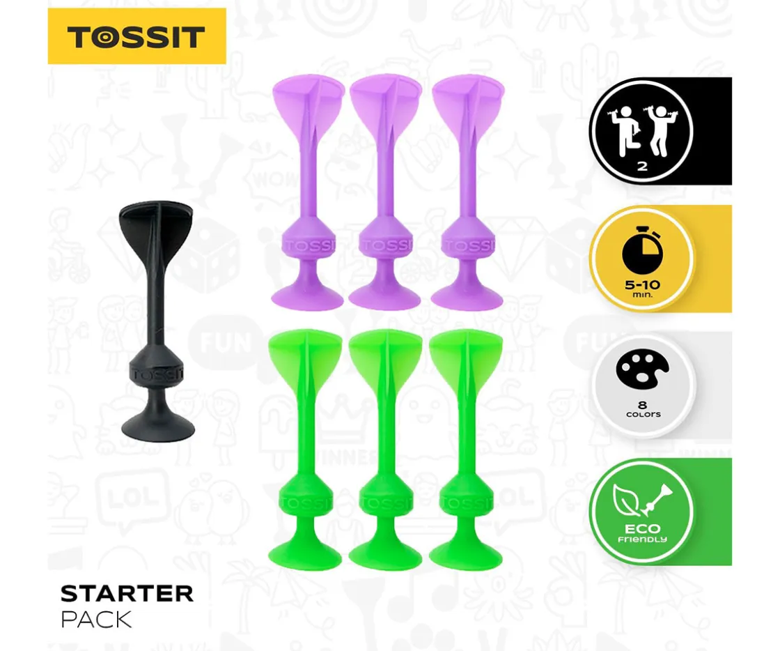 El Set Original Starter TOSSIT lleva los juegos de puntería a otro nivel. Un juego de dardos reinventado, seguro, divertido y perfecto para toda la familia. Incluye dardos 100 % de silicona con ventosa, diseñados para adherirse fácilmente a casi cualquier superficie: suelos, paredes, ventanas, encimeras… ¡e incluso el coche!