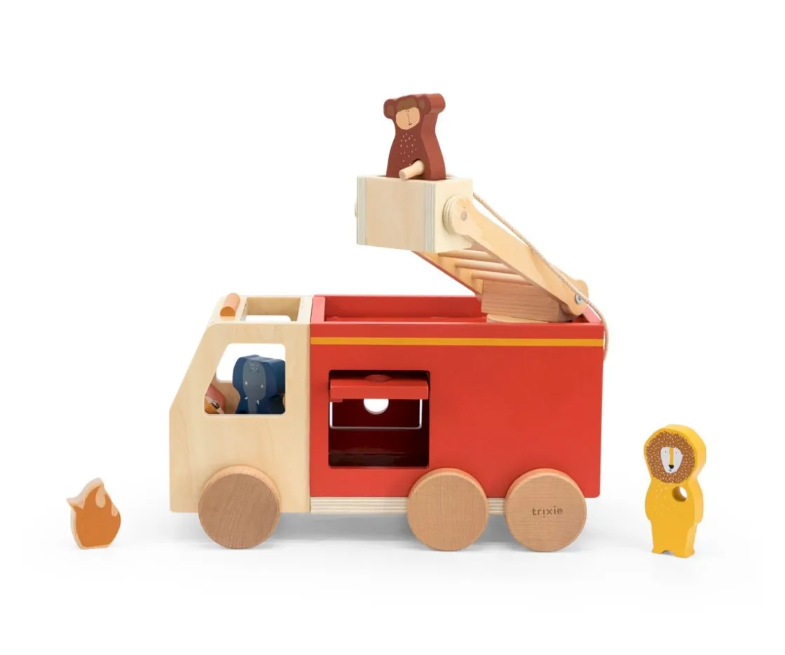 - Incluye: 1 camión de bomberos, 3 animales Trixie, 1 fuego,1 manguera de algodón, escaleras extendibles