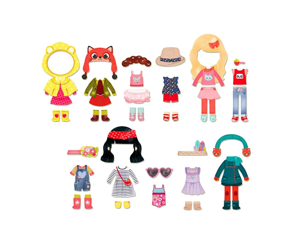Pásalo en grande vistiendo a Chloe como más te guste. Los peques podrán realizar sus propias creaciones de moda con este juego de madera magnético.