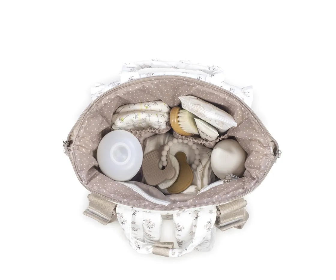 La mochila incluye 2 asas cortas ajustables que facilitan la colocación en cualquier modelo de silla de paseo, asas de mano y correas acolchadas para colgar en la espalda y llevarla contigo cómodamente.