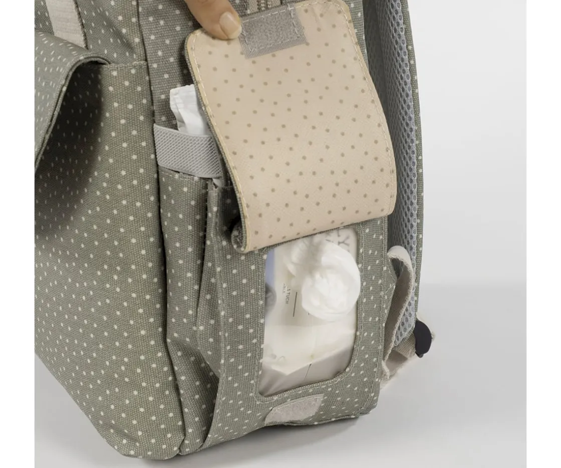 Mochila que además es una bolsa canastilla muy ligera, resistente y de gran capacidad de la colección lunares Poppy canela de Walking Mum, para llevar todo lo necesario para el paseo del bebé. El bolso incluye 2 asas cortas ajustables que facilitan la colocación en cualquier modelo de silla de paseo, asas de mano y correas acolchadas para colgar en la espalda y llevarla contigo cómodamente.