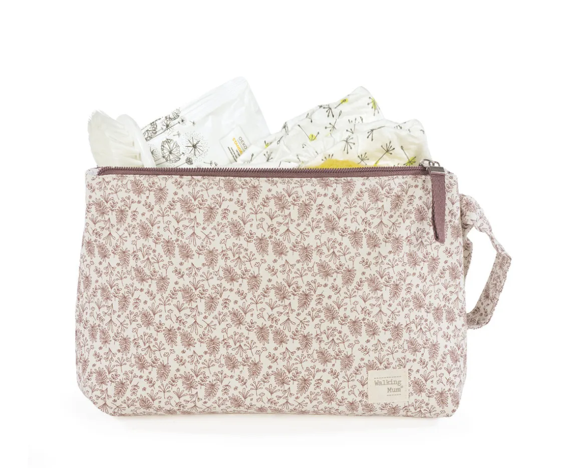 Neceser muy práctico de la colección Gala Cerise de Walking Mum, para llevar todos los productos de aseo de tu bebé. Tiene un cierre seguro de cremallera para evitar que algo pueda salirse.