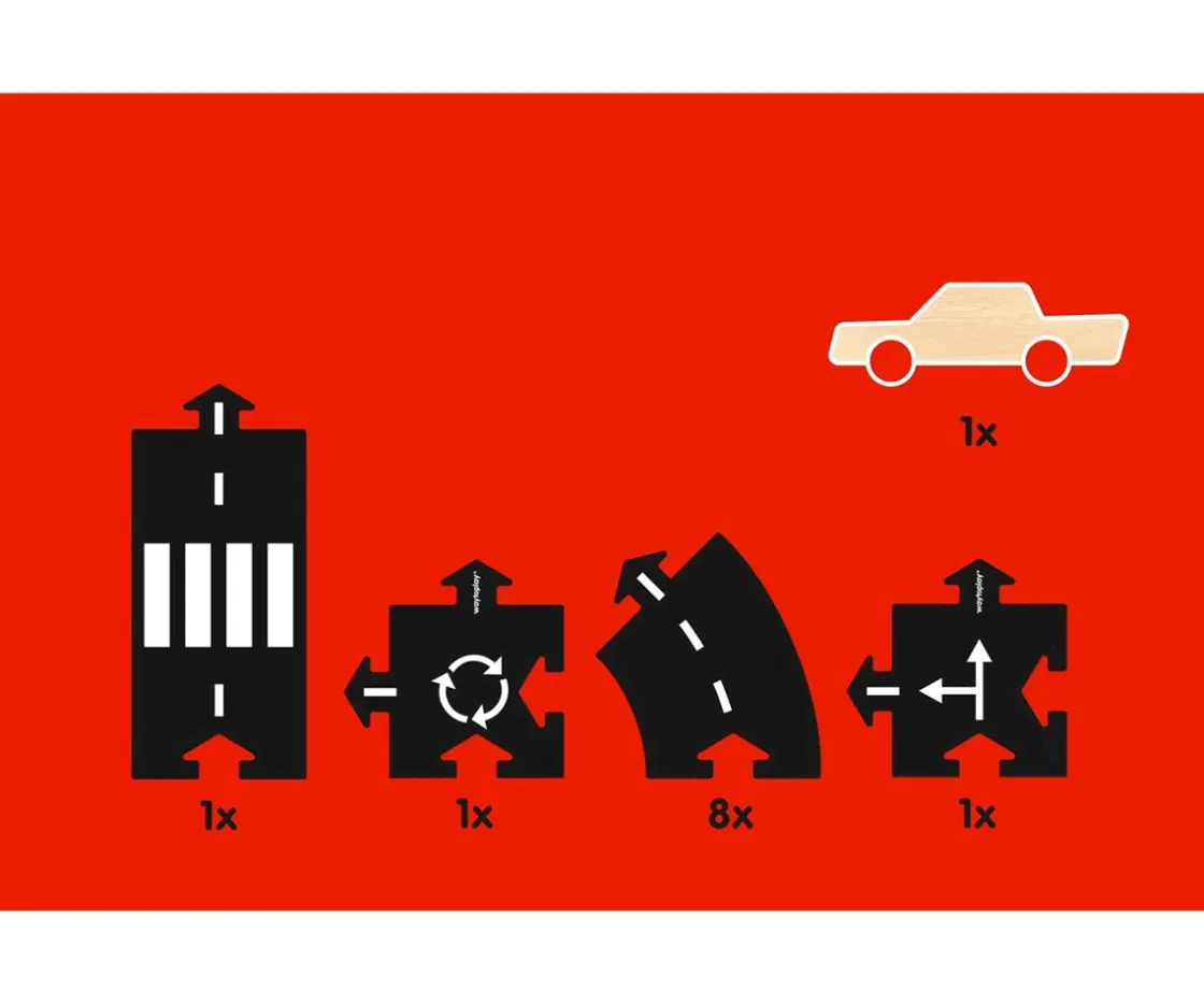 - Contiene 11 piezas (8 curvas, 2 cruces y 1 recta) y 1 coche de madera