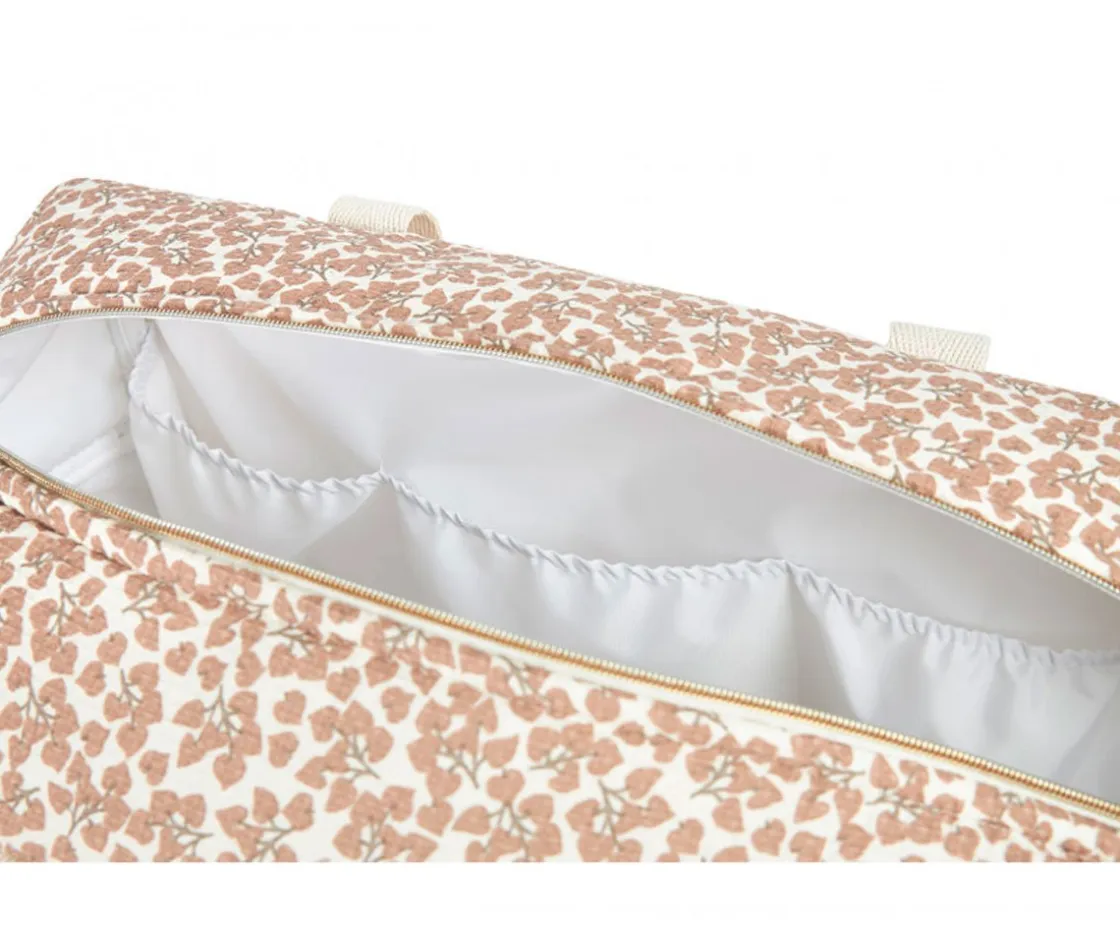 Su suave y elegante textura en nido de abeja y su pompón en la cremallera alegrarán a las mamás que no quieren negar su estilo. Su rígida estructura te garantizará que no pierda su forma, tanto llena como vacía, o aún tras una colada en lavadora.