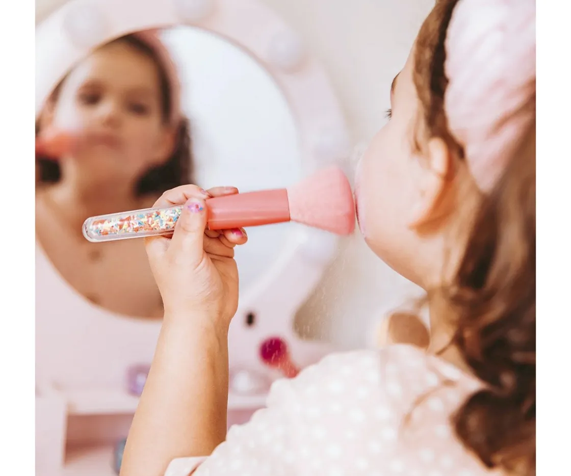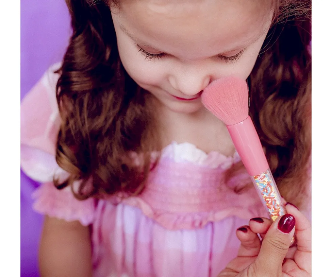 Viene presentado en un estuche transparente para guardar las brochas y el juego contiene: 2 pinceles de maquillaje gruesas, 1 brocha de maquillaje mediana y 2 pinceles pequeños. ¡Todas llenas en su interior de confetti de color!