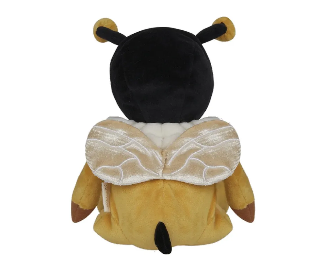 Lleva puesto un adorable traje de terciopelo dorado con un cuello blanco fruncido y unas alas color champán que brillan con la luz. Su capucha negra tiene antenitas y detalles amarillos y su piel es de tono marrón cálido, sus ojos marrones y su sonrisa brillante la convierten en una amiga especial y llena de ternura.