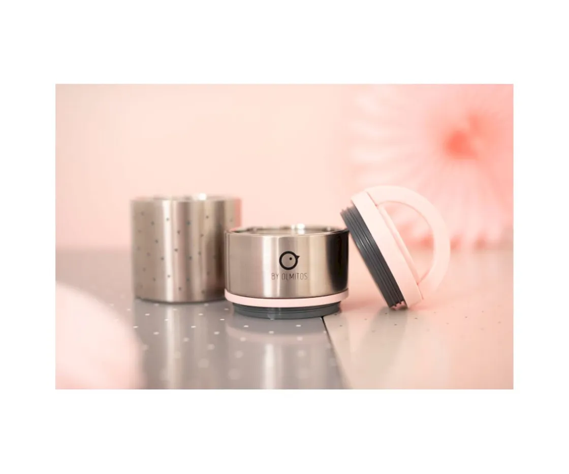 Termo para poder llevar los alimentos sólidos o purés y que mantenga la temperatura idónea durante más tiempo en los viajes o salidas de casa.