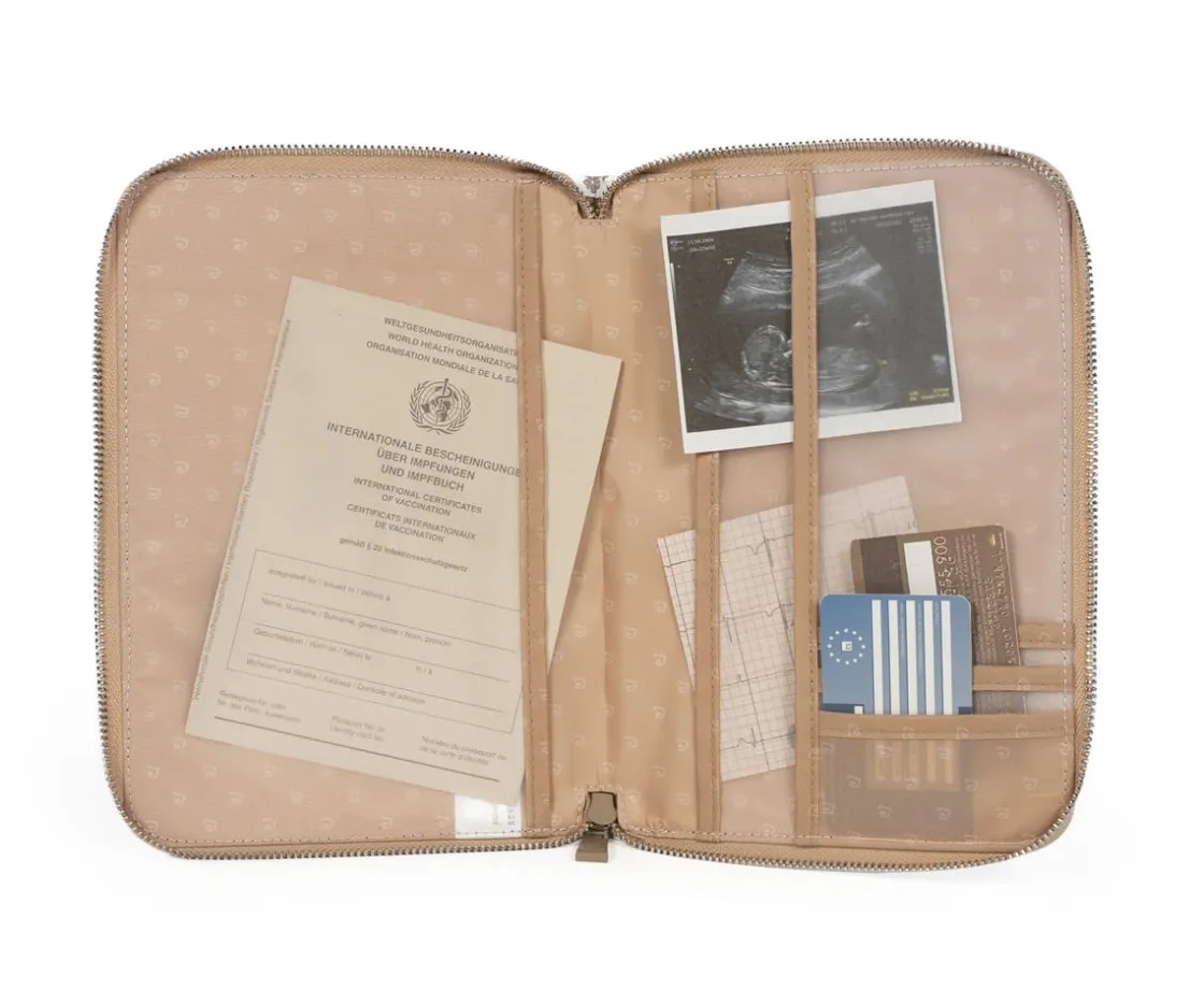 Este práctico portadocumentos es el compañero perfecto para mantener todos los papeles importantes de tu bebé organizados y protegidos. Hecho con ecopiel suave y resistente, cuenta con útiles compartimentos interiores y un cierre de cremallera para garantizar que todo esté seguro.