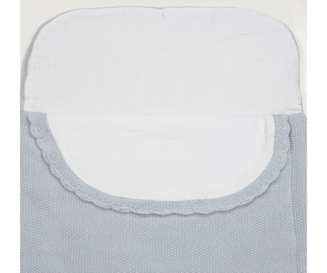 Su exterior es de tricot con forro intrerior en bambula lisa, que proporciona un contacto muy suave con la piel del bebé. Además dispone de botones a presión en uno de sus laterales para abrir y cerrar fácilmente.